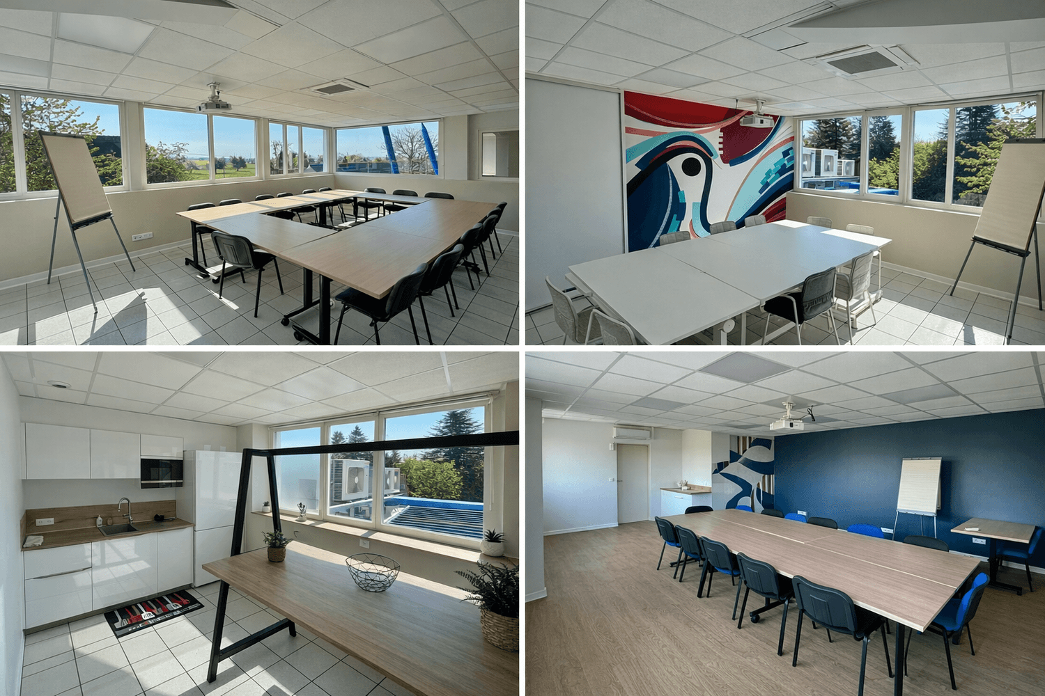 🟢 3 salles de formation modulables, adaptées aux petits groupes comme aux sessions plus larges ;